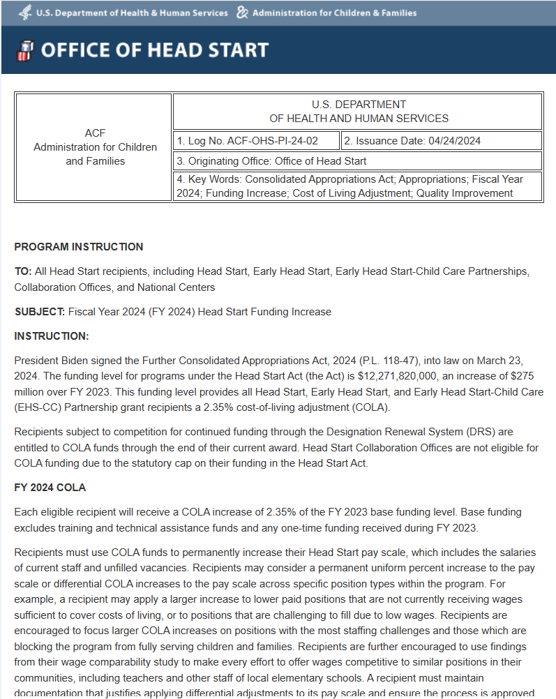 COLA 2024 Policy Document from the Office of Head Start.pdf